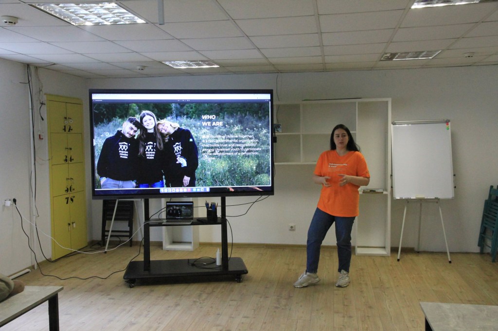 Building Ukraine Together är en stor landsomfattande organisation som arbetar för att mobilisera och skapa kontakt mellan ungdomar från olika delar av det stora landet. De startade år 2014, efter Euromaidan, som ett integrationsprojekt och kanske för att stärka den nationella identiteten.