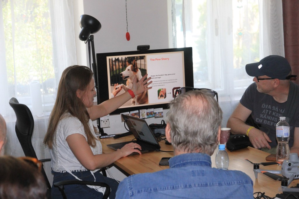 Dzygas Paw har inget med hundtassar att göra. Namnet är fånigt och missledande. Verksamheten är helt inriktad på att stödja militären. Ledaren Iryna gav en imponerande genomgång av en imponerande verksamhet. Flera i vår grupp tog i hand och tackade för en bländande föreläsning.