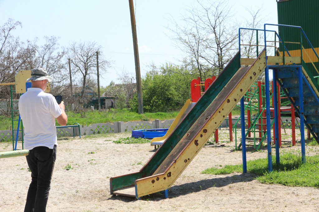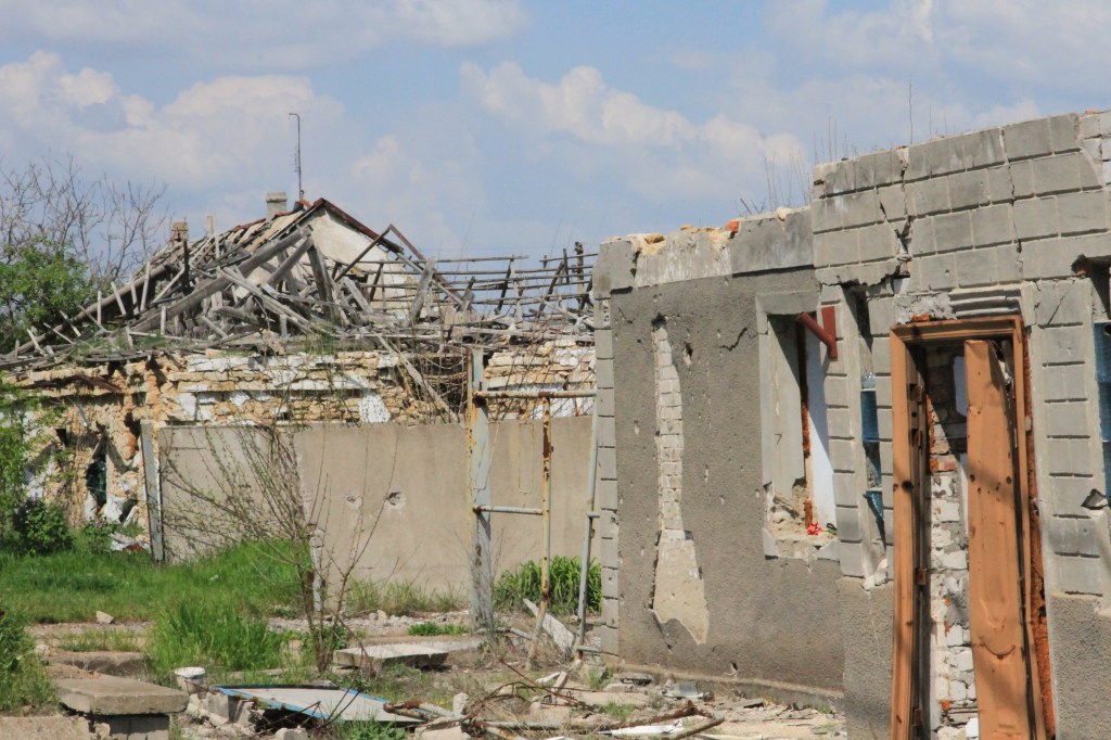 Byn var ockuperad i åtta månader. Prästen Lyonya berättade att han förhandlade med ryssarna. Ett resultat var att stigen till marknaden inte minerades. Ändå är förstörelsen i byn bland det mest ruggiga jag sett. Byn hade beskjutits med fyra vakumbomber.