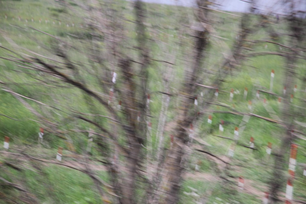 I kvällssolen åkte vi tillbaka tillbaka till Odessa. Stannade där man röjde minor, män och kvinnor i koncentrerat arbete, men tilläts inte ta bilder. Slängde iväg en bild genom fönstret för att bevara i minnet.