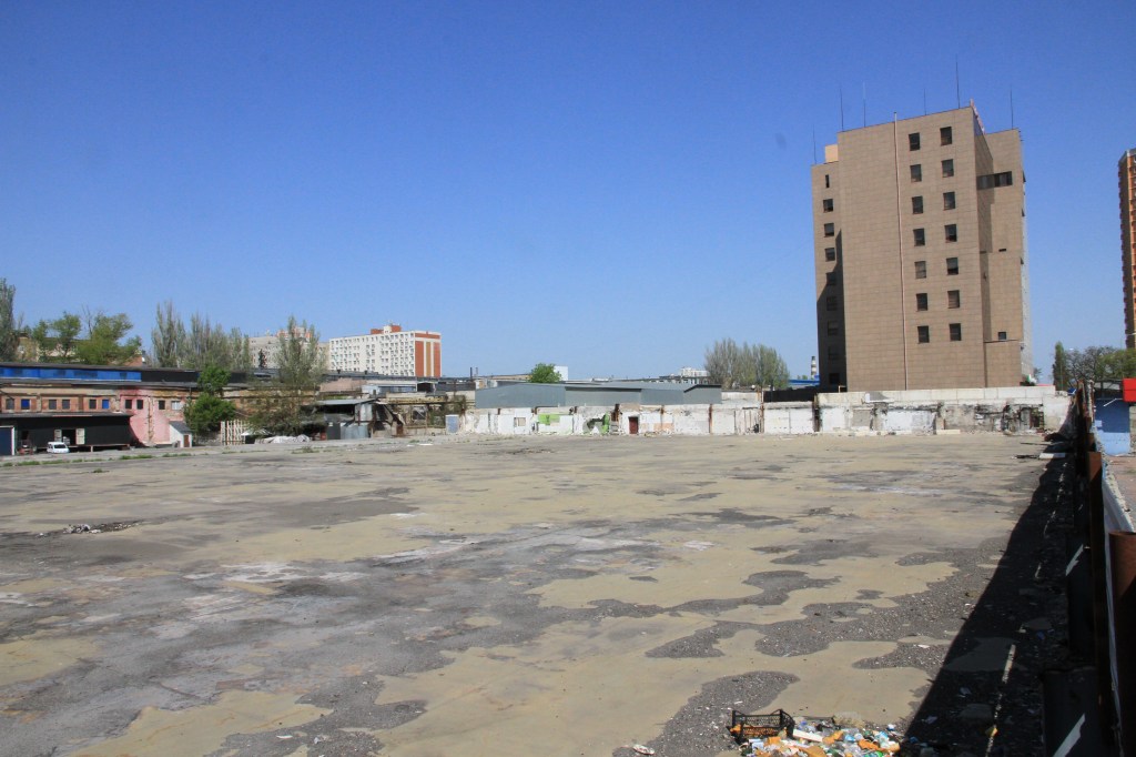 Stormarknaden förstördes i november. Allt redan röjt.Träden planterades av ”Stadens Vänner” i förrgårEn leksaksaffärHär såldes jordbruksredskap. En Iskanderraket. Värsta attacken i Odessa. 20 döda.