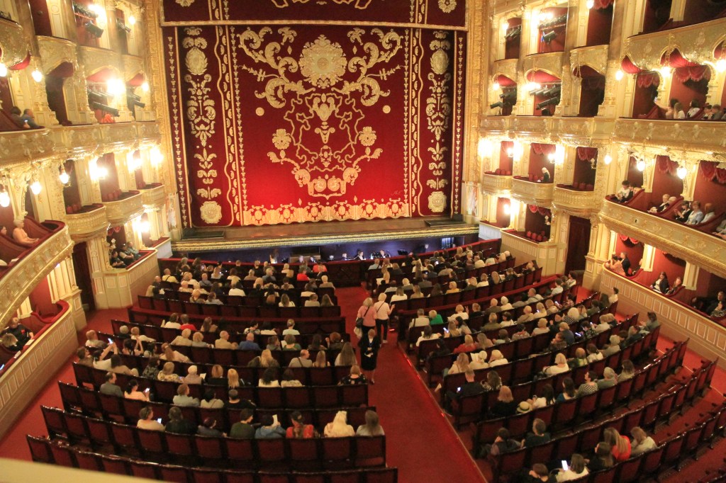 I ett tidigare inlägg berättade jag att vi hamnade i samma sovkupé på tåget som dirigenten vid Odessas opera, Vasyl Koval. Att han var ”conductor” uppfattade jag förstås som att han var konduktör på tåget. Med ett snett leende förklarade han mitt missförstånd. Han bjöd in oss till fredagens föreställning av baletten Gisélle.
