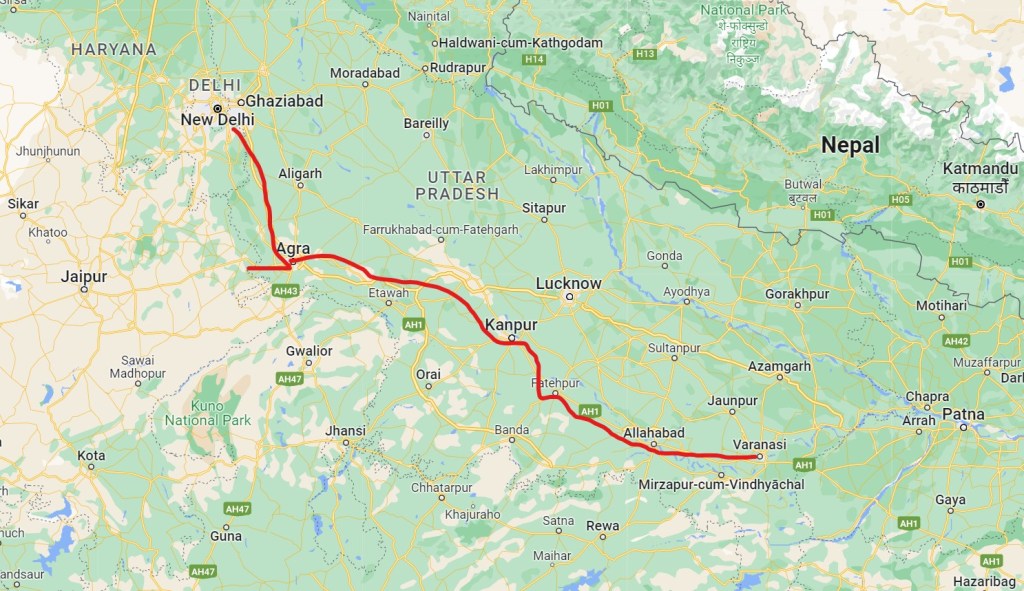 Delhi ligger vid Yamuna, en av Ganges bifloder. Vi följde floden till Agra, vidare mot världens medelpunkt Varanasi och nådde Kolkata där en av dess flodarmar når Bengaliska bukten.