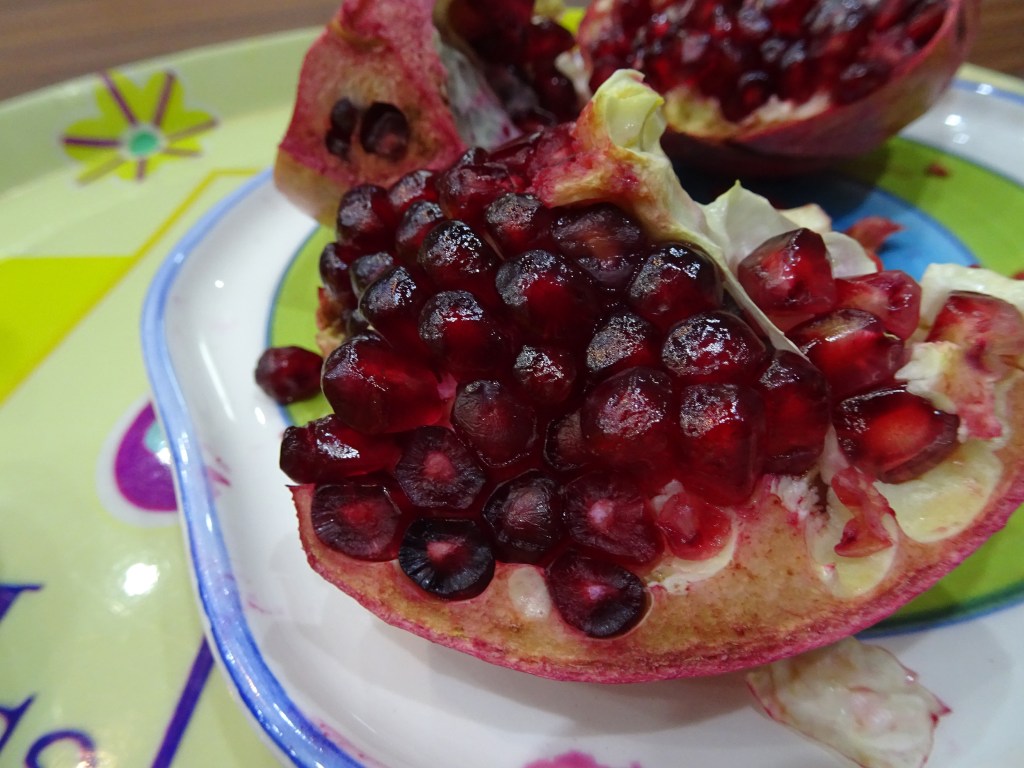 50 meter. Bussen bromsar tvärt in, stannar. Alla passagerare rusar ut för att köpa granatäpplen i storpack. Inte vi.