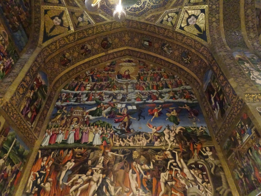 På 1600-talet bodde här en miljon armenier. Men staden härjades och brändes ner och de som överlevt blev anvisade en ny plats att bygga upp sin stad. Det blev Nya Julfa. Nu finns det endast 5000 armenier kvar. De flesta har utvandrat till USA. Vi bodde invid den vackra och väl bevarade kyrkan med tillhörande muséum. En synnerligen behaglig plats. Vad jag skriver är anteckningar från samtal med den entusiastiske museichefen. Kolla fakta på Google går inte.