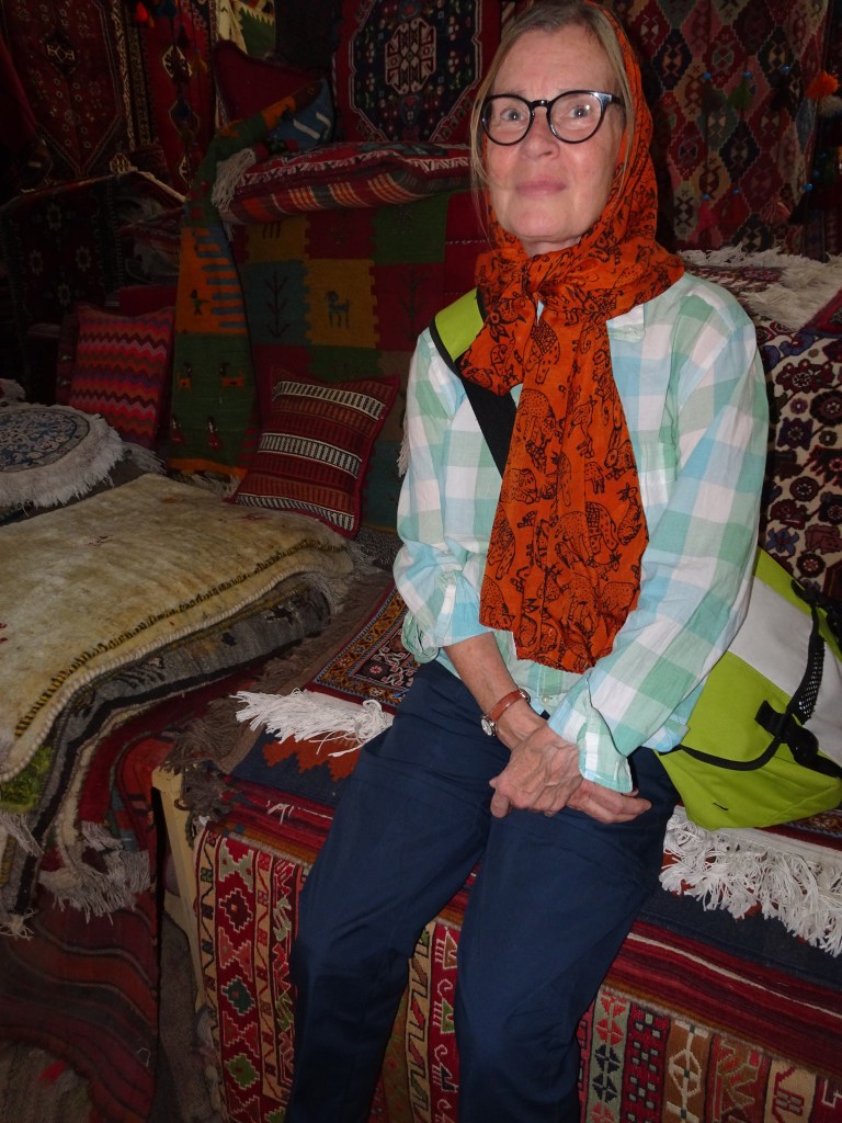 Så gick bussen igång igen och klockan hade blivit midnatt när en skylt förkunnade ”Welcome to the Islamic Republic of Iran”. Boel var spänd och satte på sig en från Sverige medförd roströd sidensjal. Hur skulle vi tas emot? Vi var ju förvarnade.