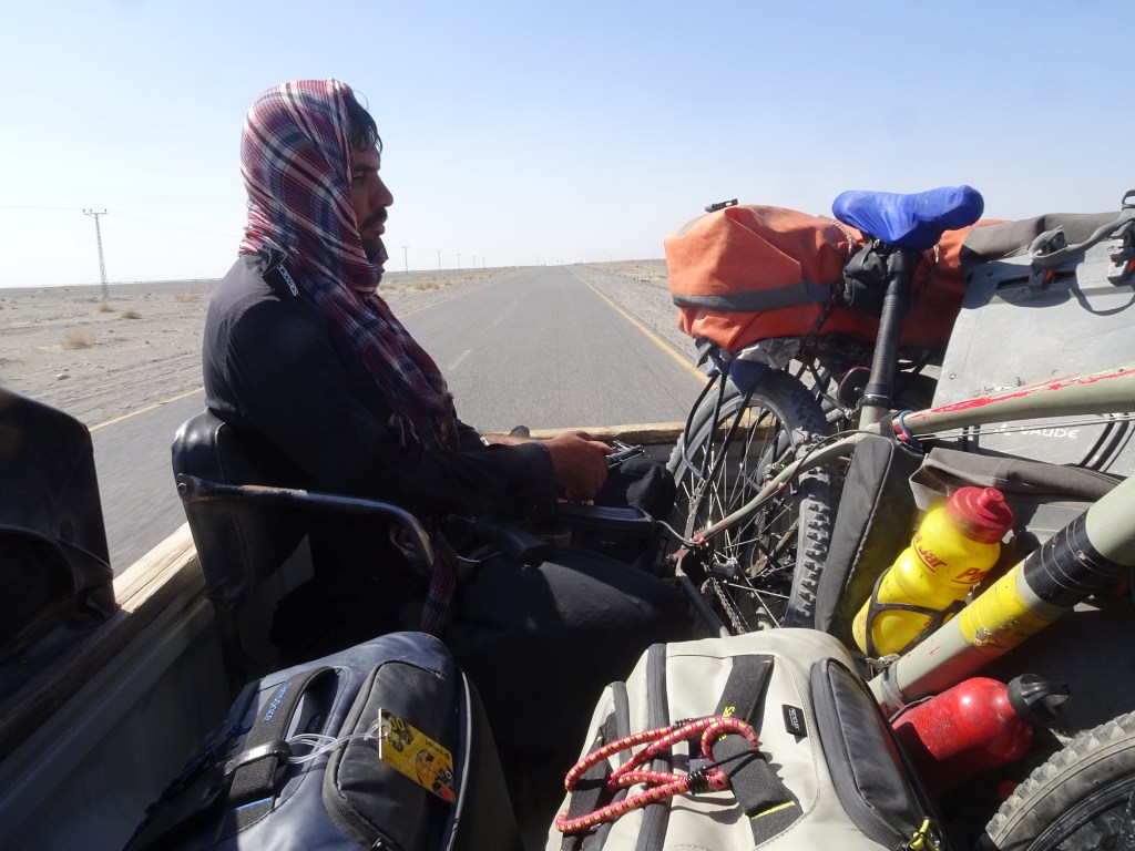 Två cyklar och bagage stod upp ur bakluckan. Två damer i framsätet och tre män, en Kalasjnikov och mer bagage baksätet. Ska vi åka så här i 40 mil ytterligare så dör jag, tänkte jag. Jag dog inte, vilket nog berodde på att det snart var byte av bil och vakter igen, med samma formaliteter. Så kom ett tredje byte och jag anade att vi inte skulle nå Quetta den dagen.