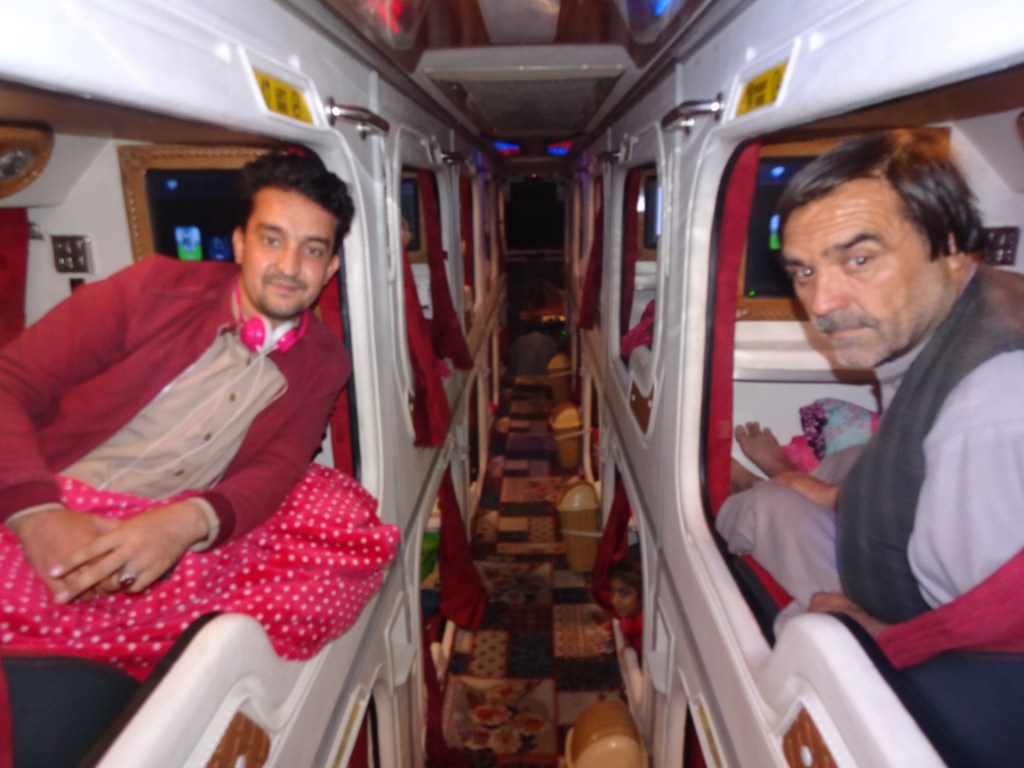 Det visade sig vara en sovbuss där jag och Boel tilldelades varsin översäng. Där låg jag hela natten och kämpade för att inte ramla ur sovrummet när bussen gjorde tvära svängar i skarpa kurvor och vid hål i vägen. Vid enstaka ljus kunde jag se spår av översvämningarna. Trötta kom vi till Islamabad och åt en alldeles utmärkt frukost med chai, parata och masala omelett.