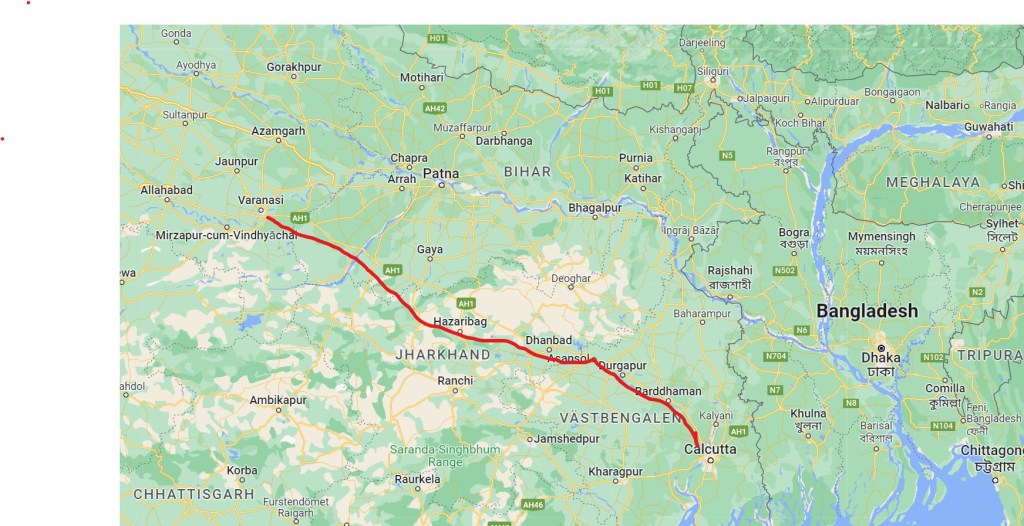 19. 11 – Dag 51. Halv åtta på morgonen rullar Howrah Superfast Express ut från Bharapur. Vi skall gå av i Varanasi, en resa på 1153 kilometer över Gangesslättens platta jordbrukslandskap. Vi har lite svårt att hitta våra platser, men hamnar i alla fall i rätt vagn. Tåget har 21 vagnar och det finns fler resenärer än platser. Ändå långt ifrån fullt. Jag har åkt med sådana tåg.