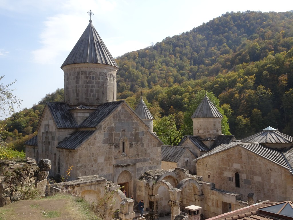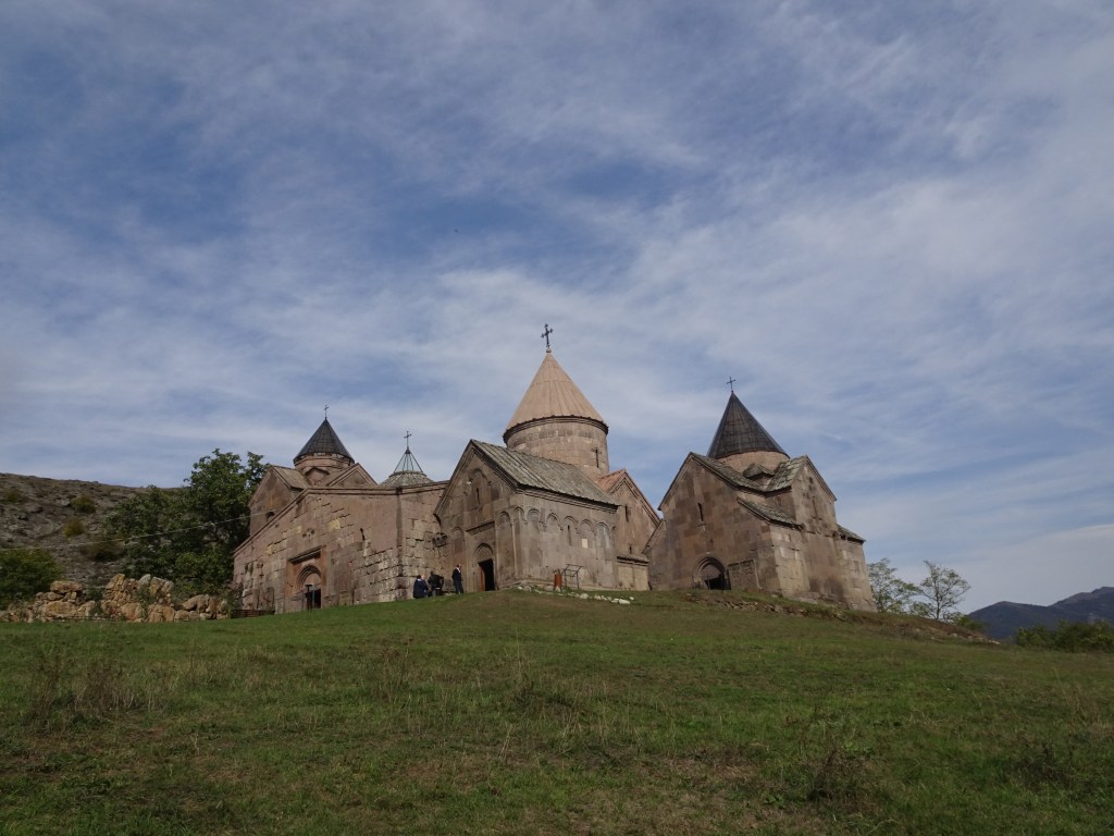 Vår taxichaufför, en liten tunn man med en stor skrattande mun lät förstå att han ville visa oss traktens mest sevärda kloster. Sevanhank kloster låg strax ovanför vårt hotell, så det såg vi själva nästa dag. Hagharsin och Goshavank körde oss taxin till. När man som taxipassagerare vill göra avvikelser från ett avtalat mål och avtalat pris, då blir det ofrånkomligen dyrt. Så även denna gång, men vi var helt nöjda.