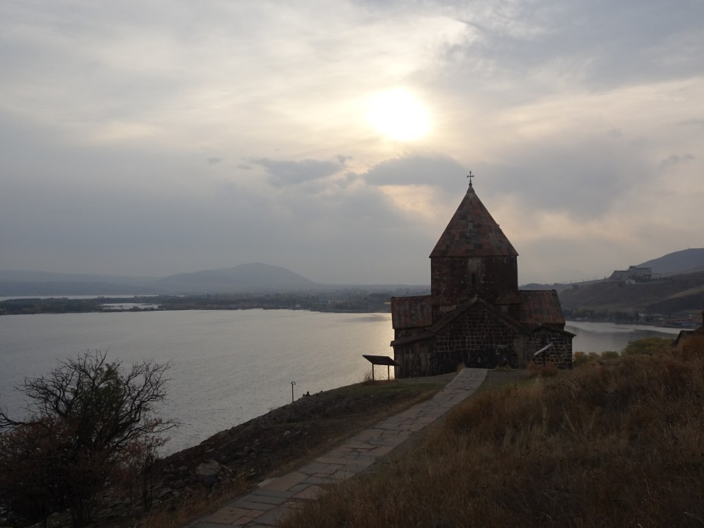 Nu ville vi bort från den här staden! Men vart då? Vi erbjöds utflykter i grupp; kloster och kyrkor på olika platser. Är man inte intresserad av kyrklig historia finns inget att se i Armenien, sa någon innan jag reste. Inte så konstigt egentligen, hit (och till Georgien) kom kristendomen redan på 300-talet. Ett alternativ var ett dagsbesök vid sjön Sevan. Men vi ville göra det på vårt sätt och kanske stanna över natten. Taxi till busstationen där det skulle gå en buss varje hel timme. Men nej, det gick ingen buss alls, vilket gladde den ende taxichaufför som fanns tillgänglig.