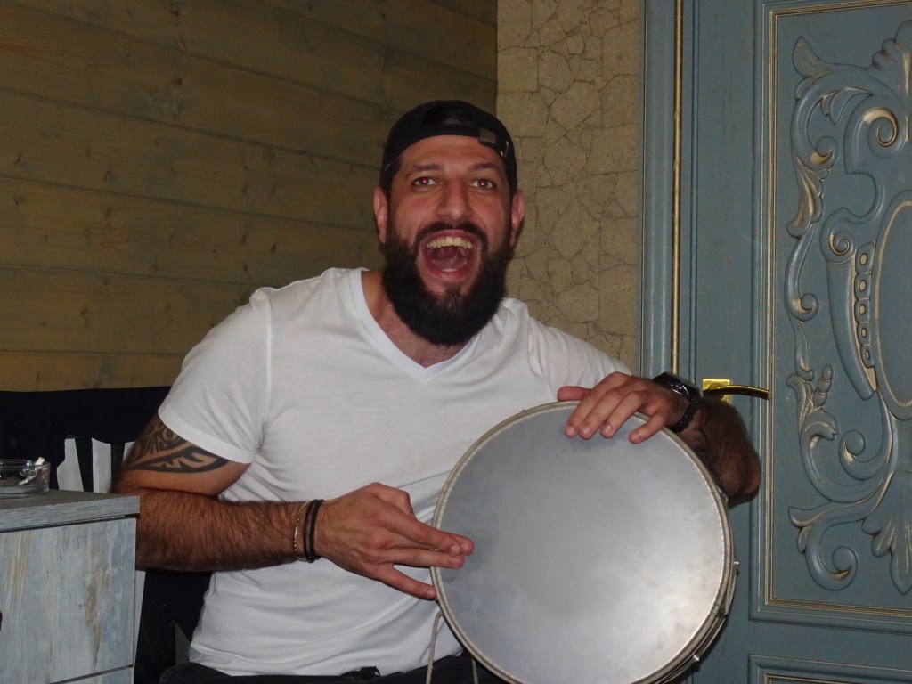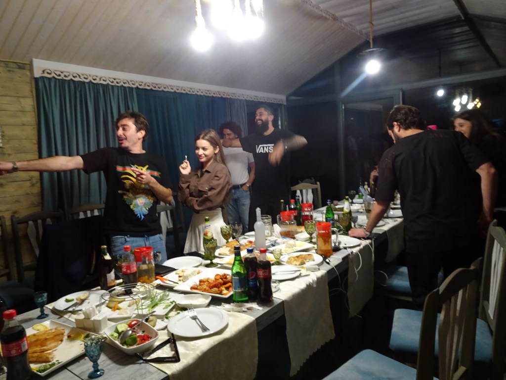 - Sitt ner, ät och drick; fisk i många former, dolmar, ostar, kräftor. Drick vin, Coca Cola, kompott, konjak, drick vodka! Och vi tog minsann för oss.