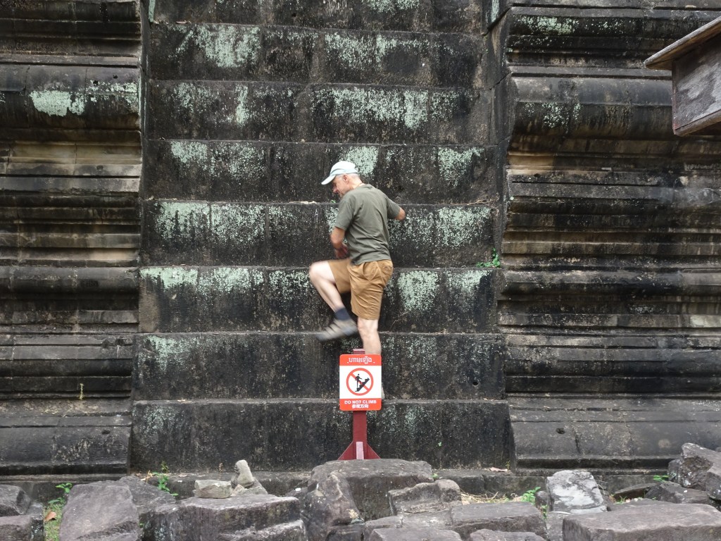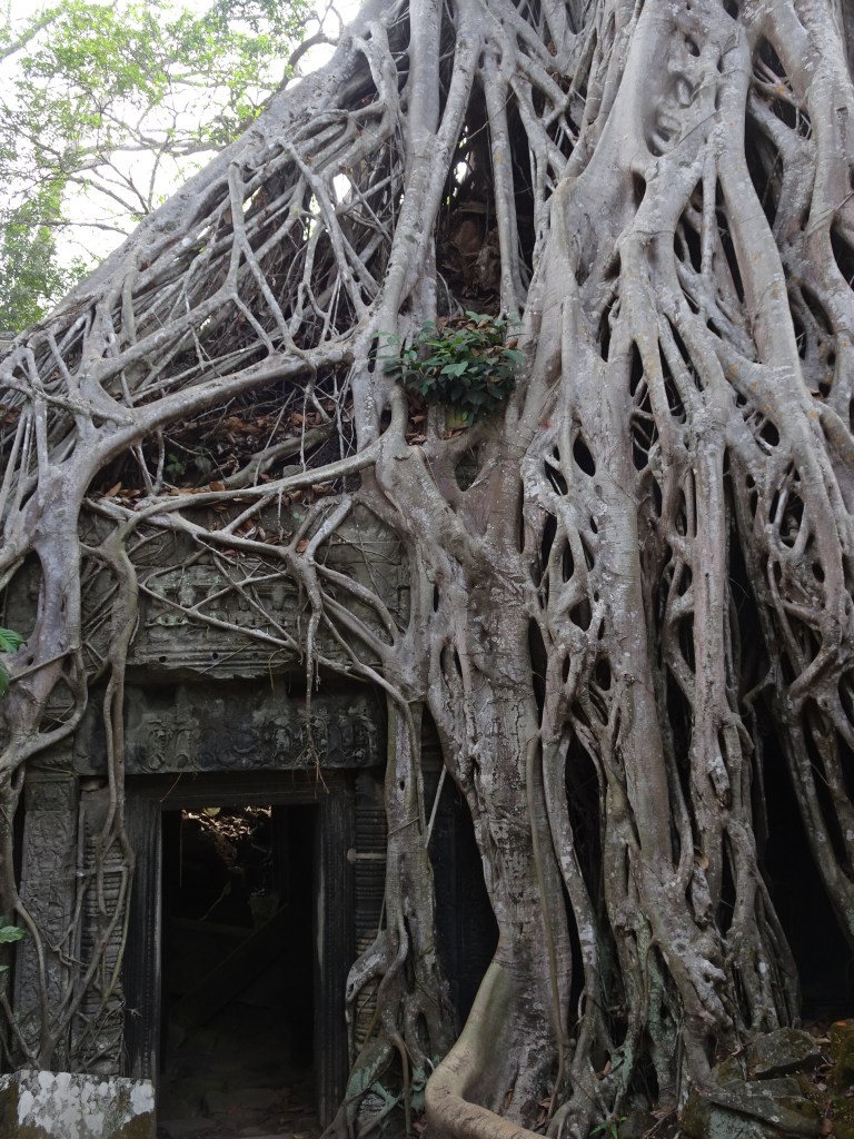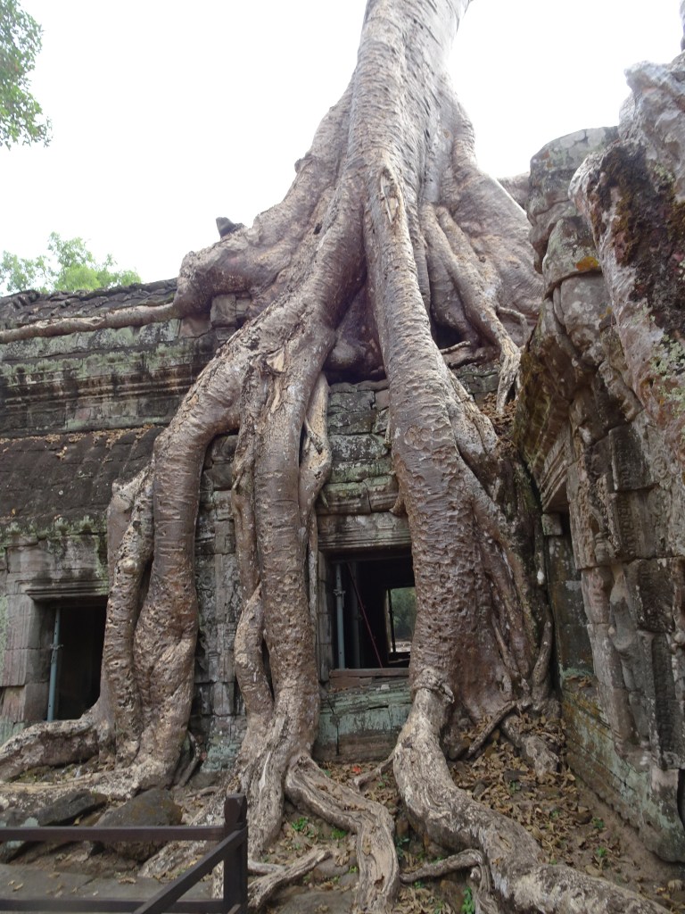 8.1 Dag 99. Tog en guide och åkte tuk-tuk ut till Ankor. Åren 800-1300 låg här världens största stad med en miljon invånare, enligt guiden. Över en yta på 1000 km2 ligger mer eller mindre väl bevarade tempel. Ankor Wat är det största templet och Kambodjas nationella symbol. Templen byggdes i sten; palats och bostadshus i trä och de är sedan länge slukade av regnskogen. Vid restaureringsarbetena tycker jag man har man hittat en fantastiskt fin balans i skogens kamp för att radera vad människor skapat och återställandet av templen. Vilka adjektiv kan jag använda för att beskriva den storslagna upplevelsen? Inte heller kan jag jämföra med något de andra av världens underverk jag fått se. Onödigt kopiera Wikipedia, Googla själv!