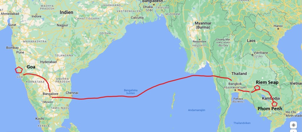 3 – 4.1 2023. Dag 94-95. Vid det här laget var vi faktiskt ganska trötta på Indien. Så snart mina reseledare lämnat Goa köpte vi flygbiljetter till Bangkok. Två dagar senare var vi där.