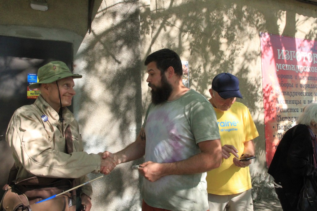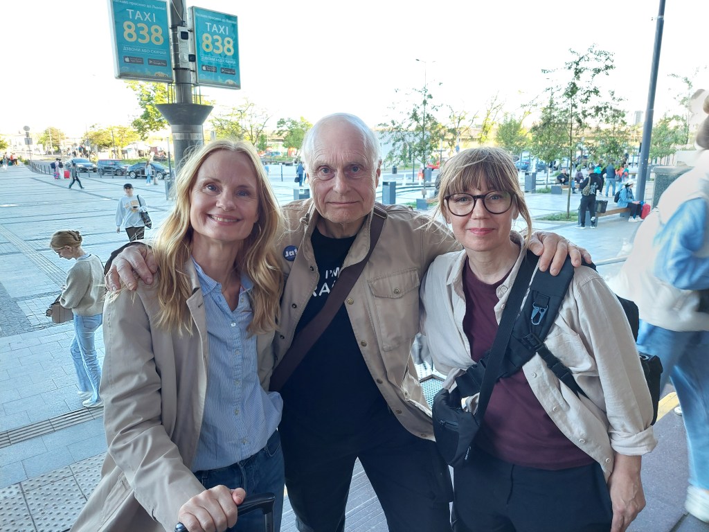 Frukost på hotellet. Där dyker gamla vänner upp. Per-Olov Karlsson (Perres matpåsar i Kharkiv), som vi besökte under förra resan och Alen Stefanac, som driver Ukrainahjälpen i Väst. Perre befinner sig normalt i Kharkiv, Allen i Frillesås i Halland. Fantastiska människor som gör fantastiska insatser för Ukraina. Kolla in dem på FB! Vi visste vi kunde träffas, men rena slumpen att vi var på samma plats i samma stund.