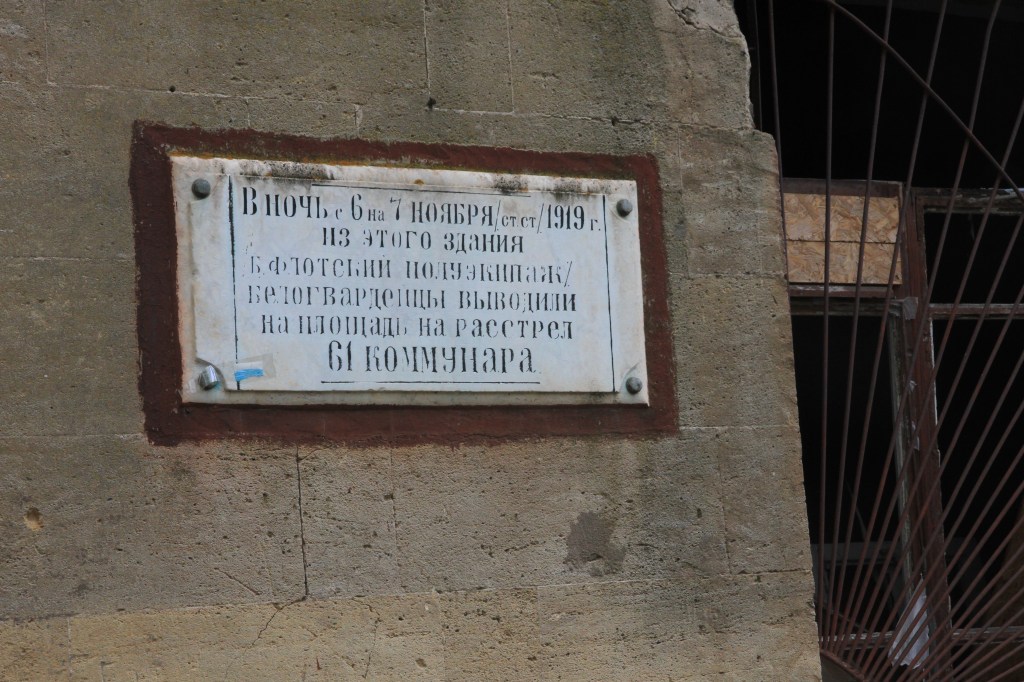 Vågor av terror har rullat över Mykolaiv. Här var striderna hårda mellan de vita och bolsjevikerna under revolutionen. År 1919 sköt bolsjevikerna 113 motståndsmän mot den här husväggen. Under åren 1933-34 dog 3,5 – 5 miljoner människor i landet av den av Stalin framtvingade svälten, kallad Holodomor. Sedan kom andra världskriget där kommunister och nazister först var allierade, därefter fiender. Krigsfronten rullade fram och tillbaka över samma byar, samma människor. Stalin har ansvaret för fler människors död än Hitler, har jag läst mig till. Fast Mao var allra värst.