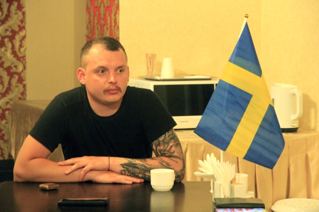 Oleksiy, företagare och uppfinnareDonationer på plats är en del av resaan
