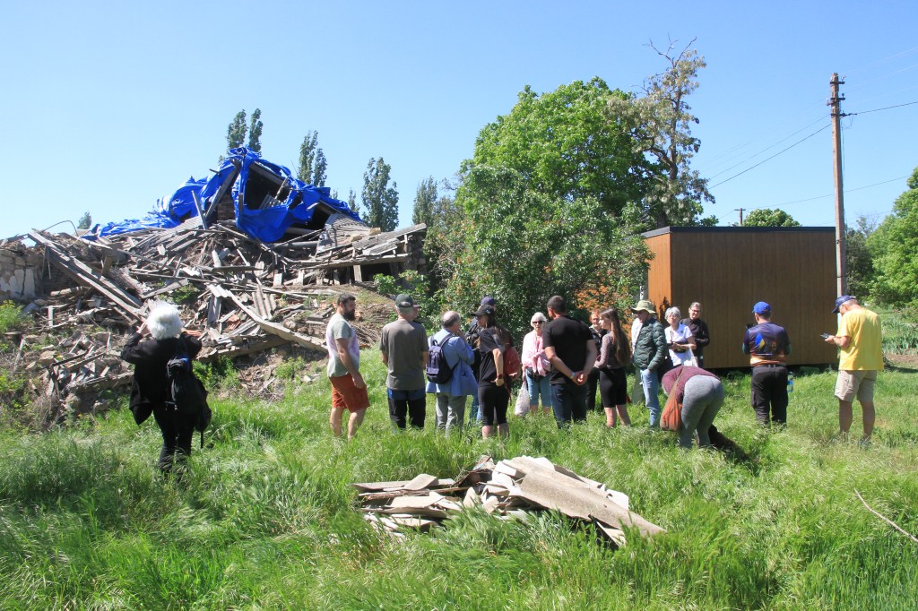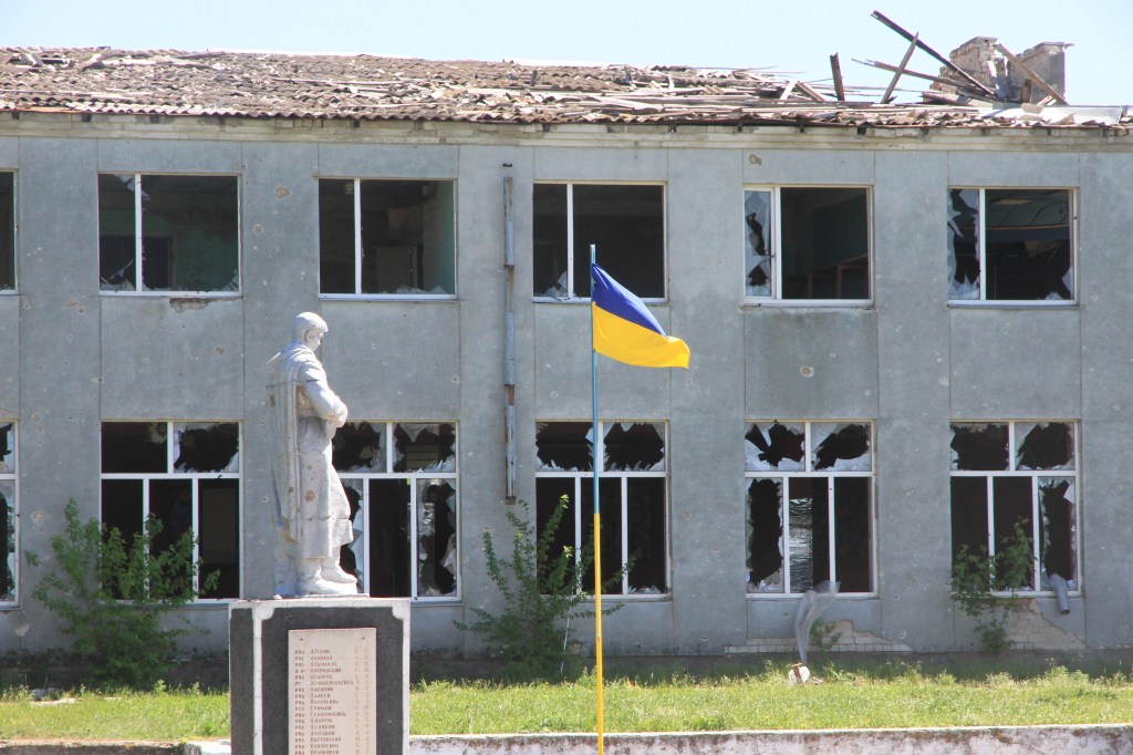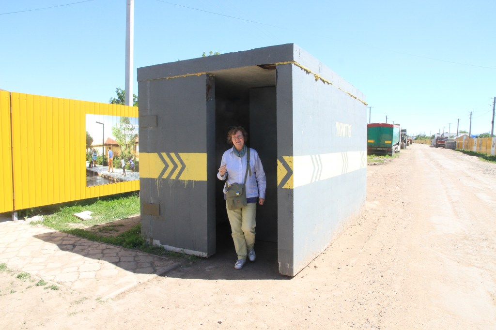 Det var här Ukraina stoppade anfallet mot Mykolaiv. I byn Posad-Pokrovske. Tidigare en liten by med hus och trädgårdar längs en eller två gator. Nu var i stort sett alla hus sprängda av retirerande ryssar eller av granater. Högarna med granathylsor förklarar historien. Ett stort återuppbyggnads projekt har kommit igång genom National Agency for Restoration. En del nya hus är klara, men verksamheten står nu still i väntan på mer pengar.