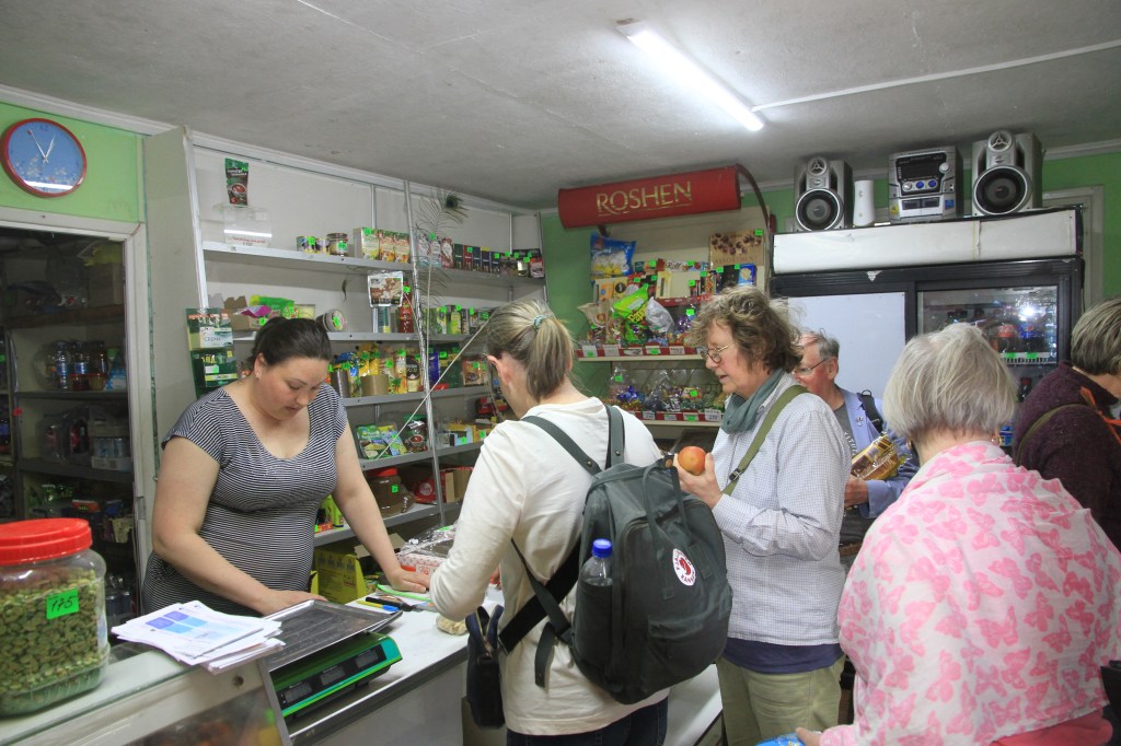 Vi besöker organisationen On the Wave. Egentligen en stor affär för friluftsartiklar. Vid anfallet 2022 lämnade man allt till militären och lokalen blev flyktingförläggning. Nu är det butik igen. I stället utvecklar de nu en fjärrstyrd vagn som skall hämta skadade vid fronten till säkerhet. Försedd med två boggier tar den sig fram genom svår terräng. Snart kan den masstillverkas. Kreativa och uppfinningsrika, tänker jag igen.