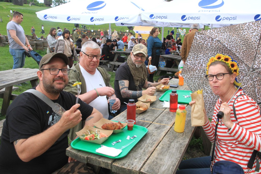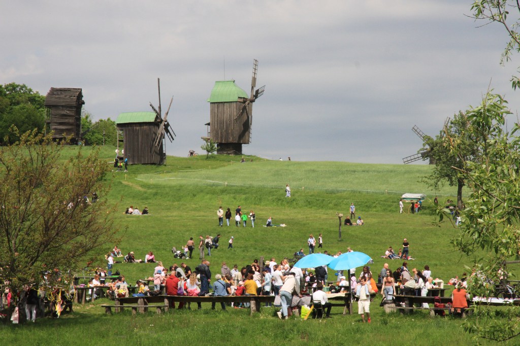 Påsk firas stort inom den ortodoxt kristna världen. Påskdagen är den stora dagen och jag lägger om programmet. Vi åker till Kyivs ”Skansen”, ett utbrett, kuperat, beskogat område med grupper av byggnader som representerar alla delar av landet. Massor med folk som firar med musik och dans. Här finns bodar som serverar underbar mat och allsköns specialiteter. Öl och kvaz. Det var bara att hoppa in i dansen! Fick också med oss de annars så upptagna vännerna Alen, Axel och Perre.