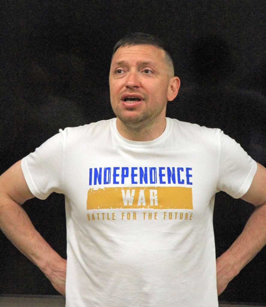 Oleksy har startat organisationen BAD. Låter inte så bra på engelska, men förhoppningsvis något bättre på ukrainska. Första dagen tog han familjen till centrala Ukraina, därefter hjälpte han, vänner och hans anställda i textilfabriken till med att skaffa mat till soldater och flyktingar som kom från de ockuperade byarna öster om staden. Hans familj är tillbaka sedan ett år.